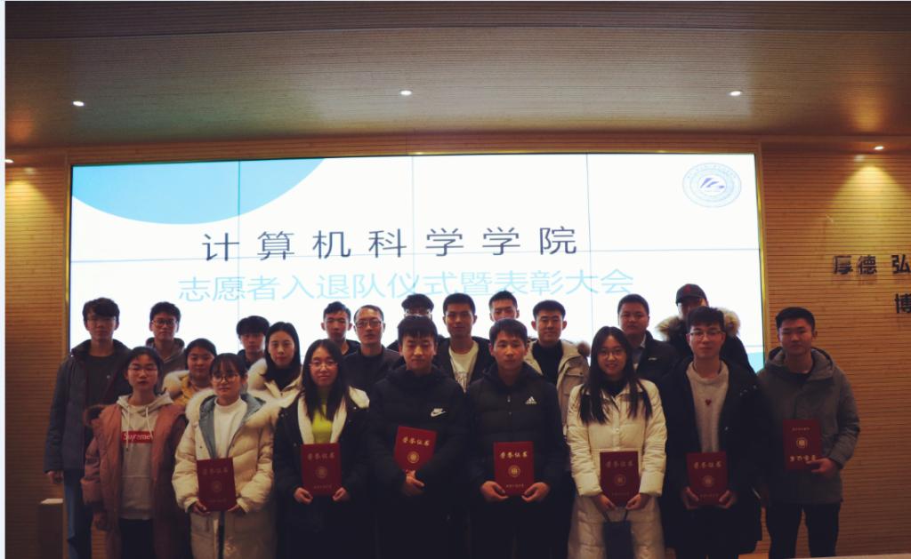 接下来,2019级计算机科学与技术卓越1班学生丁冠星作为青年志愿者代表分享了自己自入校以来参与的志愿服务活动以及收获,他号召全体志愿者积极投身志愿服务活动中,发挥大学生模范带头作用,为学院、学校贡献自己的一份力量。