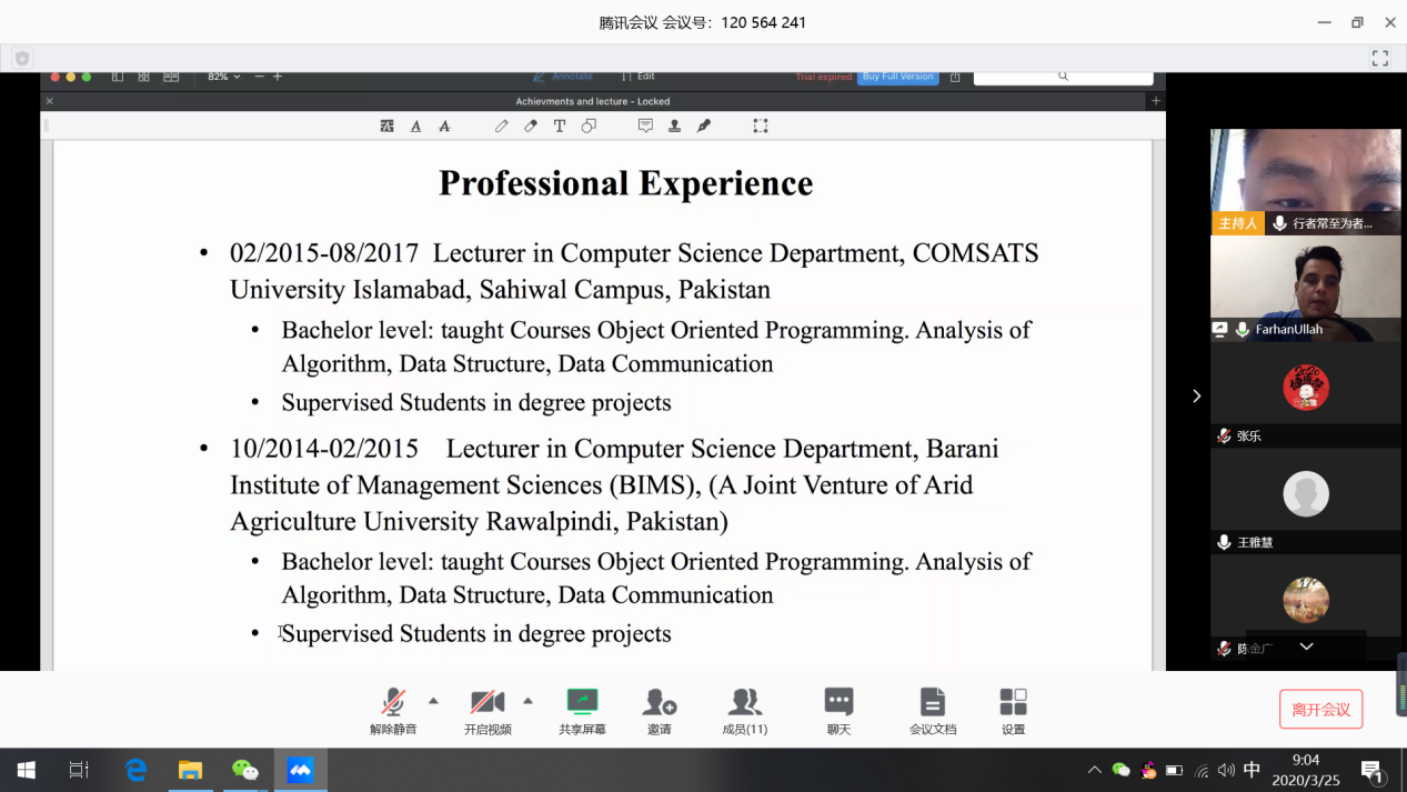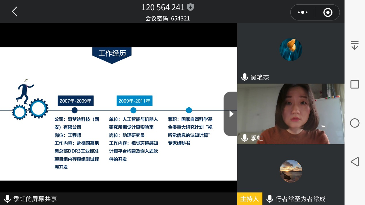 薛涛首先对学院的基本情况进行了简单介绍,并对四位参加面试的博士表示欢迎。线上面试的工作流程与现场面试相同,通过个人情况简介、在线授课、评委提问、评委集中评议、反馈面试结果等环节依次进行,会议持续近三个小时。参加本次远程面试的应聘者和评委分别居住在西安、成都、山西等地区。利用不聚集、多点连接的远程视频面试,学院和应聘博士实现了线上“面对面”的交流,既保障了安全,也让学院和应聘博士的面试交流打破了地域限制。