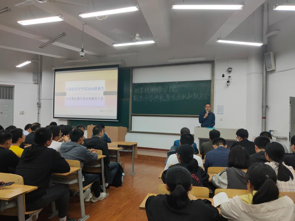 首先院长薛涛代表学院全体教职工对2020级新生的到来表示热烈欢迎,在简短介绍学院历史前沿、专业设置、师资队伍、教学科研、实践应用、学生考研就业等情况后,他勉励全体新生要完成高中到大学的转变,尽快适应大学生活,做好时间规划,四年大学时光要有所收获。最后他对全体新生提出了三点要求:一是学会学习,树立目标,制定规划,认真完成学业任务;二是要学会独立生活,实现自我管理,养成良好生活习惯;三是要学会做人做事,诚信为本,谨记校训,做当代合格大学生。