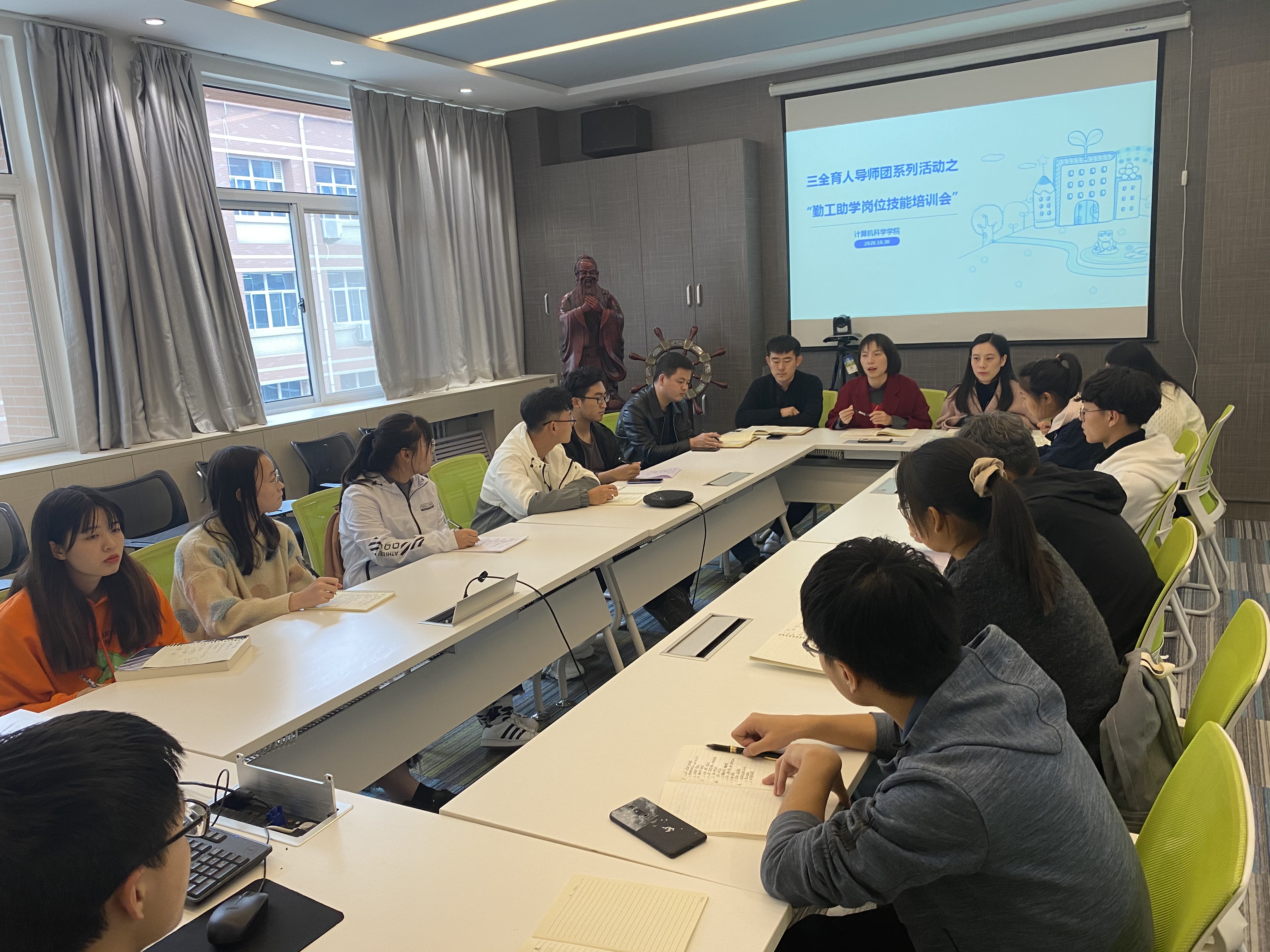 10月30日中午,365英国上市官网在线在7-426会议室举办了“三全育人导师团”系列活动之勤工助学岗位技能培训会,学院全体辅导员及新任学生助理参会。会议由学工办主任朱瑾主持。