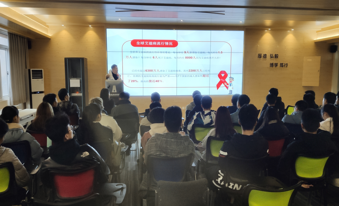 首先,辅导员薛绍凡就“什么是艾滋病”、“艾滋病的传播途径”、“艾滋病的防护措施”、“艾滋病的灭活途径”等方面进行了详细介绍,并且对日常生活中可能会感染的场合进行了一一列举,重点强调了大学生不仅要对艾滋病有正确的认识,而且要树立防艾的责任意识。