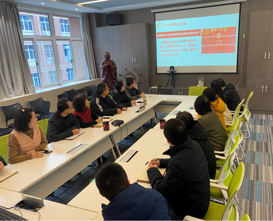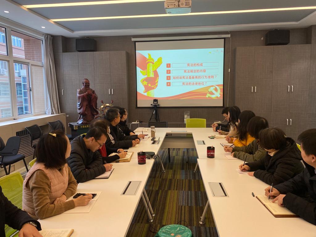 会上,首先由党委书记王雅慧带领全体参会人员重温习近平总书记关于宪法的10句重要论述,并重点讲述了宪法学习的重要性。她提到,弘扬宪法精神,建设法治中国,要以习近平法治思想为指导,坚定不移走中国特色社会主义法治道路。习近平法治思想源于实践又指导实践,深刻回答了新时代为什么实行全面依法治国、怎样实行全面依法治国等一系列重大问题。这一重大理论创新成果,顺应实现中华民族伟大复兴时代要求,是新时代全面依法治国的根本遵循和行动指南。要认真学习、全面贯彻习近平法治思想,把握核心要义,结合自己的工作岗位职责,扎实开展好各项工作。