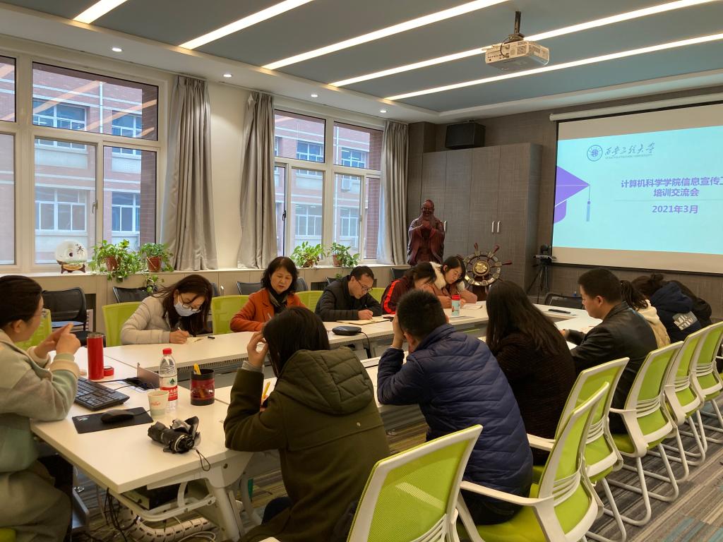 3月10日下午,365英国上市官网在线在临潼校区笃行楼426会议室召开信息宣传工作培训交流会,邀请了校党委宣传部新闻宣传中心主任张琪老师给大家进行培训交流。学院党委书记王雅慧、副书记周波、学院各部门信息员、秘书、行政人员及党支部书记参加了会议。