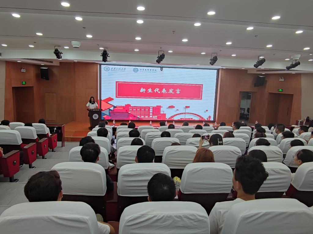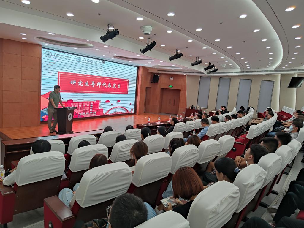 随后毕明洋作为老生代表发言,她表示新同学们不仅需要按照培养计划的安排,学好各门基础课程,还要多看专业领域相关的书籍和文献,要脚踏实地、志存高远、不忘初心、砥砺前行。史楠作为新生代表进行表态发言,所有新生要做好研究生阶段的人生规划,还要刻苦钻研、锲而不舍,发扬艰苦奋斗的精神,一定圆满完成学习研究任务。
