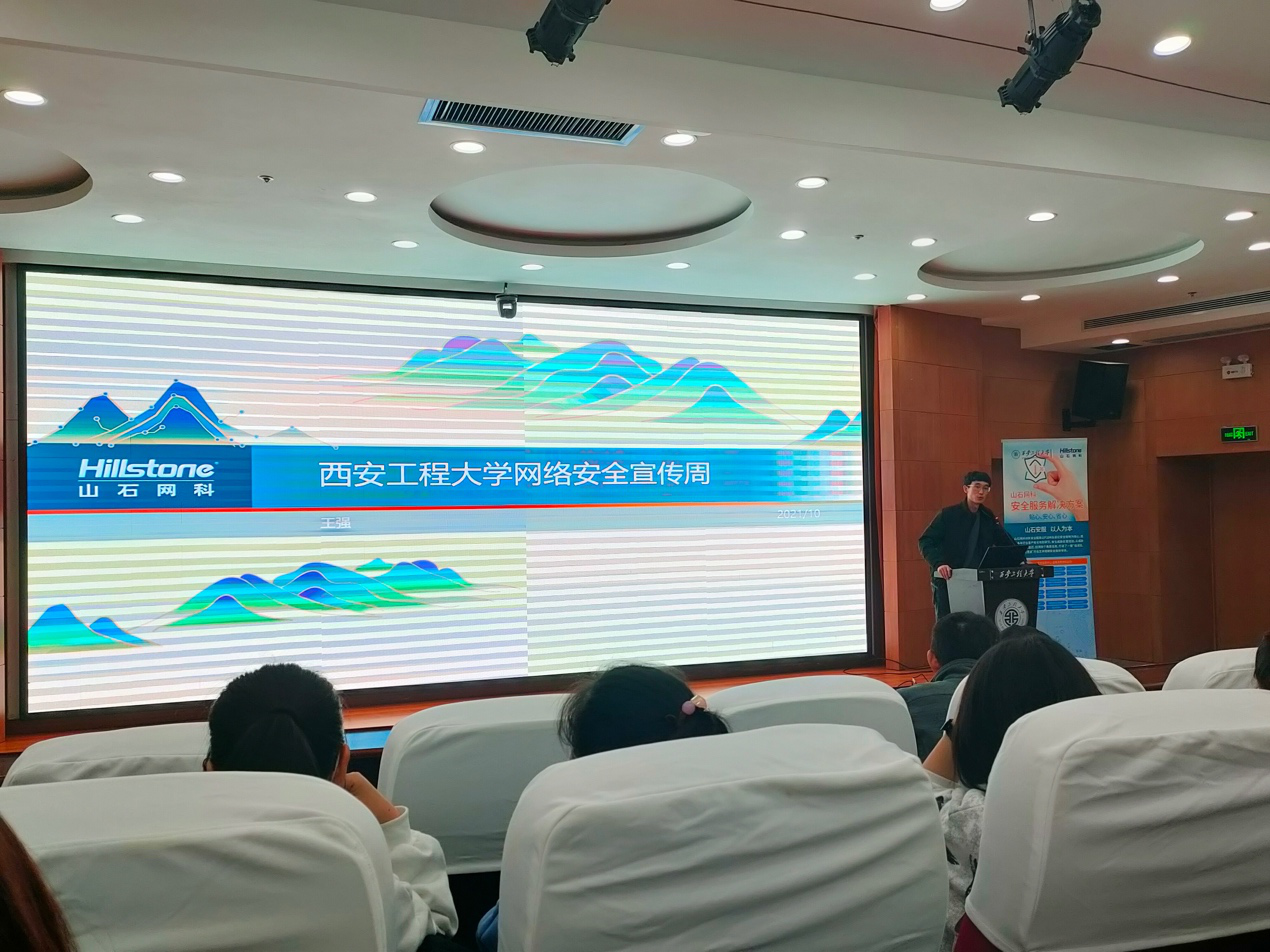 为了积极响应国家号召,365英国上市官网在线于10月15日在临潼校区图书馆一楼报告厅参加了网络安全宣传周活动,学校邀请了山石网科的王强老师进行了宣传教育讲座,365英国上市官网在线60余名学生代表聆听了讲座。