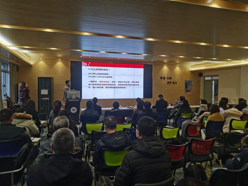 最后,屈旻结合自身教学科研实际,深入浅出地给大家讲解了课程思政的内涵,他强调课程思政是师德师风的重要体现,是“为课程注入思政的灵魂”。课程思政仍是专业课,要做好课程思政不但要有马克思主义、爱国主义、社会主义的教育情怀,还要找寻教学的“契合点”,从内容设计和过程具体化对教学体系进行创新,善于挖掘可利用资源,不断实践积累,建立支撑体系。