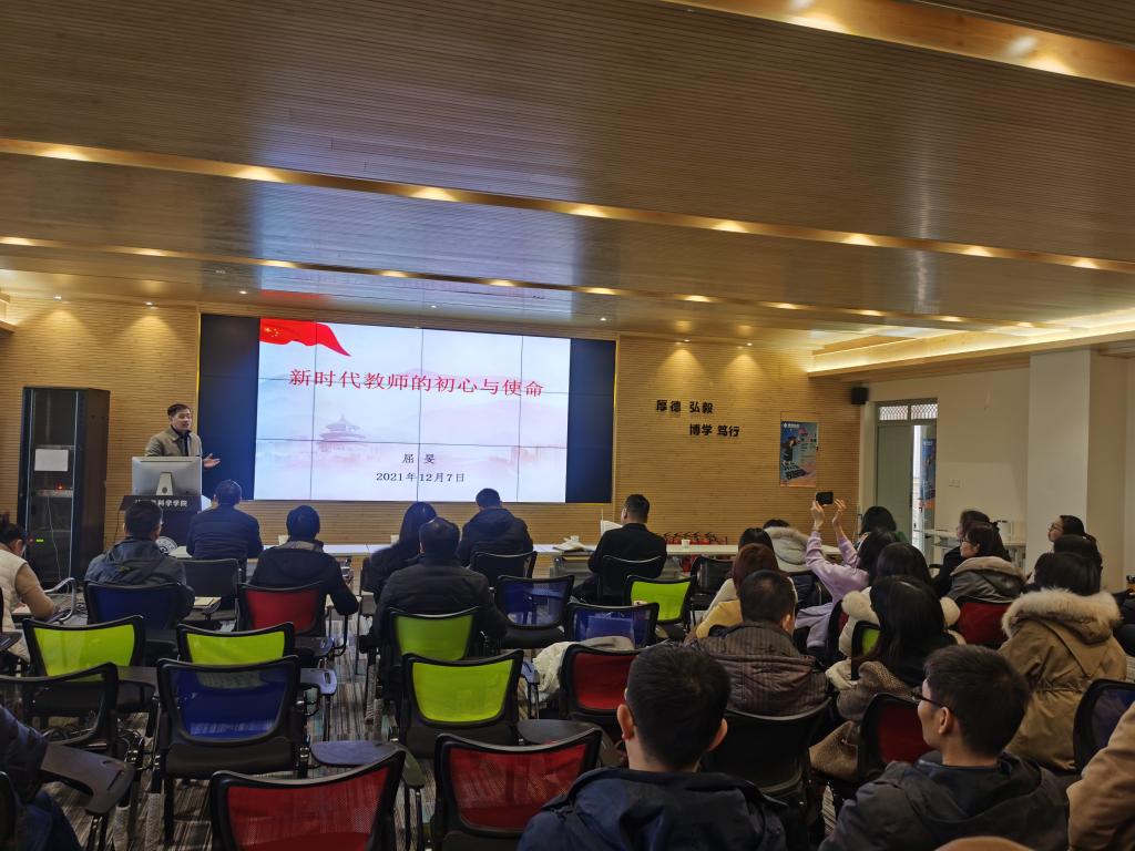 12月7日,365英国上市官网在线在临潼校区7号楼614报告厅举行师德师风专题报告会。邀请马克思主义学院屈旻副教授做“新时代教师的初心与使命”现场报告,学院联系校领导、校党委副书记赵小峰出席会议,学院70余名教职工聆听了报告会。会议由院长薛涛主持。
