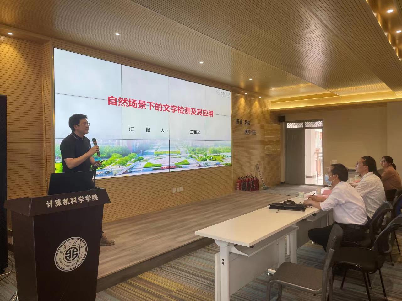 接着,王西汉以《自然场景下的文字检测及应用》为题,从自己的求学经历开始说起,详细介绍了自己研究方向的研究背景、关键问题、解决措施以及自己所做的项目经历。他向同学们介绍了自然场景下的文字检测中所遇到的问题有:文字任意方向的排序方式、文字语言种类的多样性、图片质量的增强等,其解决方式为基于由粗到细监督卷积网络的任意方向场景文字检测算法、基于尺度估计的自然场景中多语言文字检测算法、基于布局约束追踪的场景视频文字检测算法、基于反卷积网络消除图像中的模糊算法等。最后介绍了他的项目经历有863子课题、暗光照图像增强以及浑浊水下增强算法研究等。