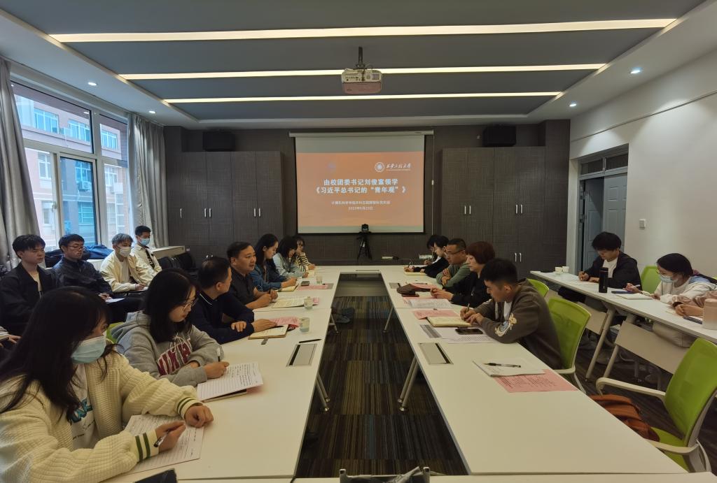 刘俊富以时间为序,重点就党的十八大以来习近平总书记“五四”期间给青年的希望和寄语对习近平总书记的“青年观”进行了学习分享,引导青年学生要争做“有理想、敢担当、能吃苦、肯奋斗”的新时代好青年,并对双方结对共建下一步工作提出工作设想。