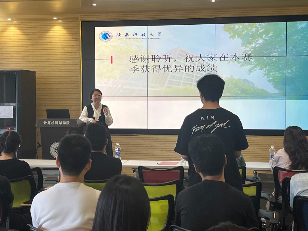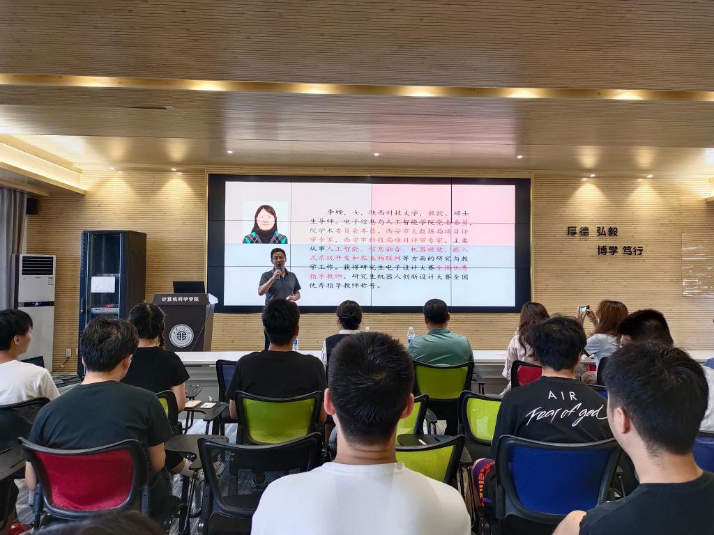首先,张凯兵代表学院向李老师的到来表示热烈欢迎。他简要介绍了主讲人的基本情况,希望大家认真听讲,有所收获。报告会上,李颀老师从竞赛指导教师的角度出发从参赛的全流程的角度,分别对选题、赛前准备、实物展示、赛后复盘等方面着重做了讲解并提出指导性意见,强调创新实践要注重以问题为导向,技术创新要紧扣主题,同学们在参赛过程中要找准切入点,及时整理参赛资料并及时做好复盘总结。会后,相关参赛队伍针对自身团队项目存在的问题和李颀老师做了交流。李颀老师结合自身多次带队经验,建议尽可能在自己的竞赛项目中加入硬件,软硬件结合更有可能取得好的成果。张凯兵在总结讲话中鼓励同学们发挥各学院卓越师资和资源优势,珍惜机遇,勇攀科创高峰。他强调,竞赛有助于同学们挖掘潜能、提升综合素质,培养跨学科交流、团队协作及创新能力。最后,有关负责人向与会研究生详细介绍了由365官网研究生工作部主办、365英国上市官网在线承办的“华为杯”第五届中国研究生人工智能创新大赛校内选拔赛暨西安工程大学第一届研究生人工智能创新大赛的赛程及注意事项。