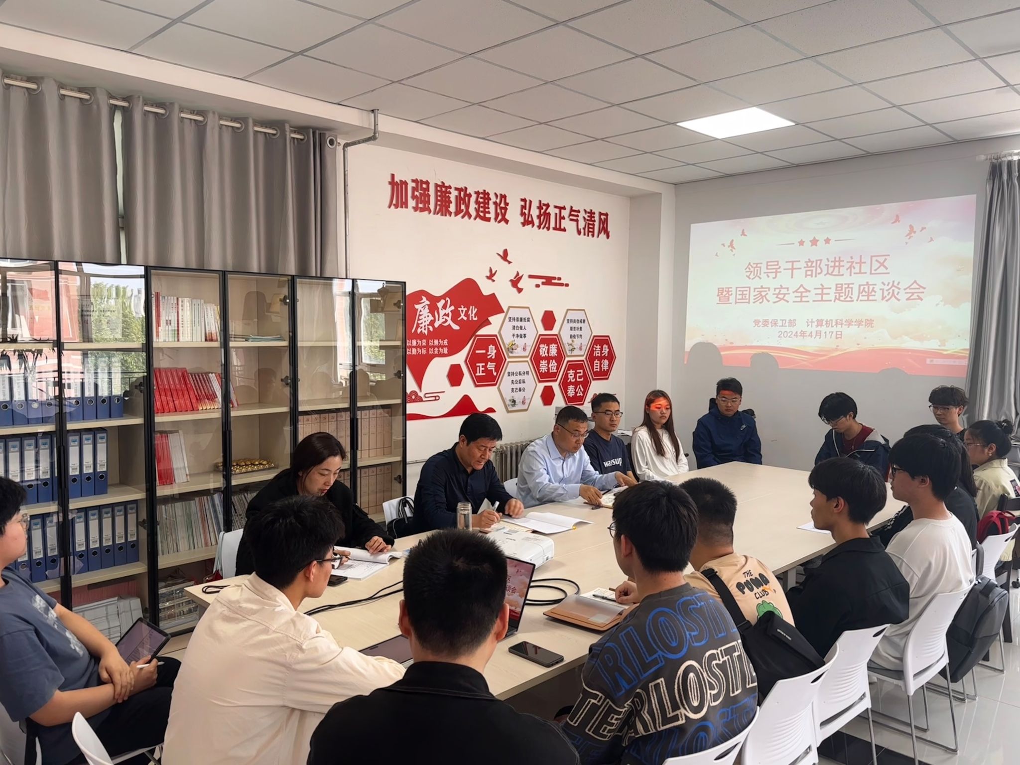 4月17日,校党委保卫部部长潘光辉、政保科副科长闫红洁赴365英国上市官网在线IT青年成长空间“一站式”学生社区联系功能性党支部开展领导干部进社区暨国家安全主题座谈会活动。计算机学院党委副书记兼学生社区功能性党支部书记赵勇进、学院组织员兼学生社区功能性党支部副书记朱成功及16名学生党员参加了座谈会。座谈会由赵勇进主持。